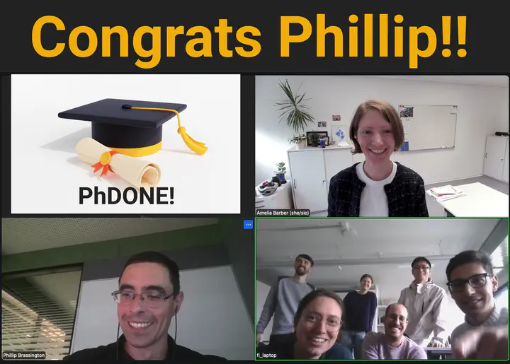 Phillip relocated back to Oceania in the period between submitting his dissertation and his oral defense, so we had to make do with a virtual defense, but we are still incredibly proud of him.